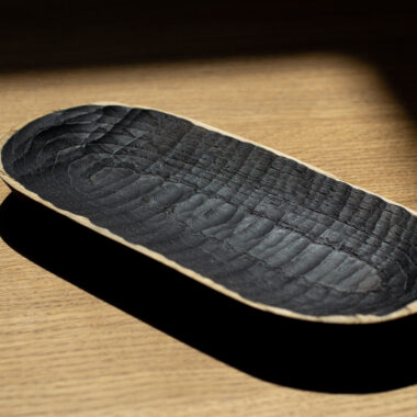 VOL. I est le premier envol de la collection PIÑEN : une série de plats en bois de châtaignier, sculptés à la main et noircis à l’aide de deux techniques.